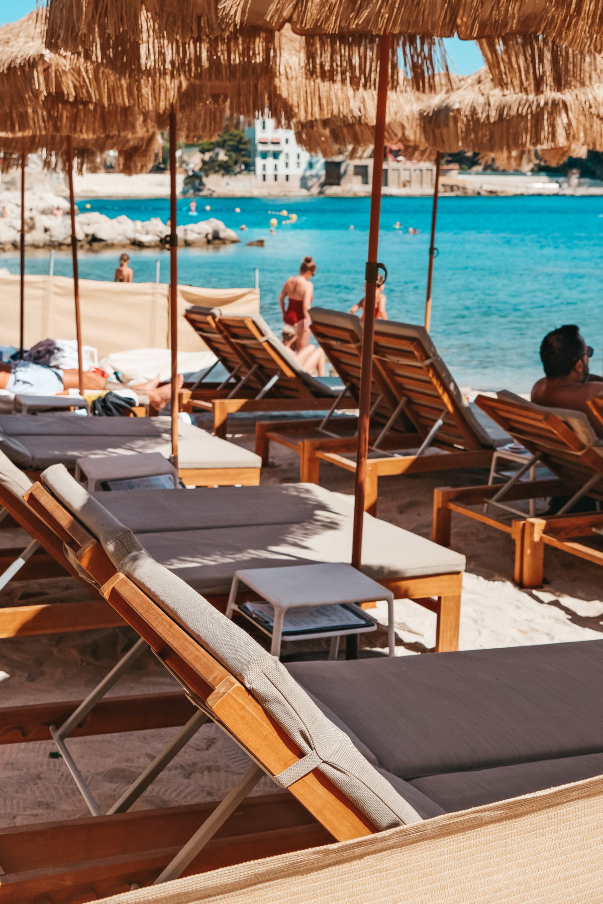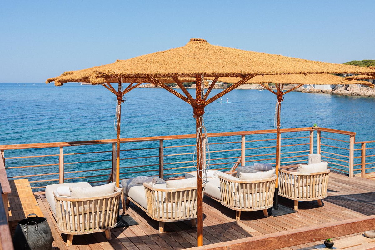 Discover our private beaches with mattresses and deckchairs.